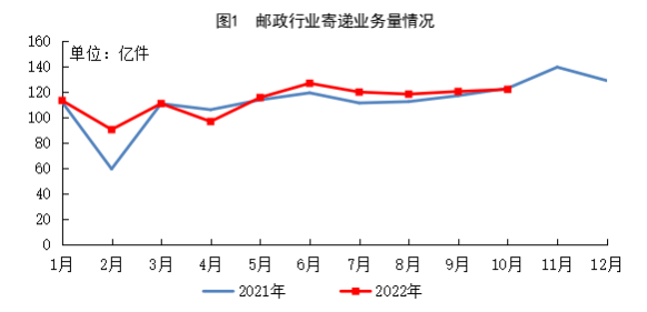 10月份,郵政行業(yè)寄遞業(yè)務(wù)量完成122.1億件,同比下降0.7%。其中,快遞業(yè)務(wù)量完成98.6億件,同比下降0.9%;郵政寄遞服務(wù)業(yè)務(wù)量完成23.5億件,同比增長(zhǎng)0.1%。