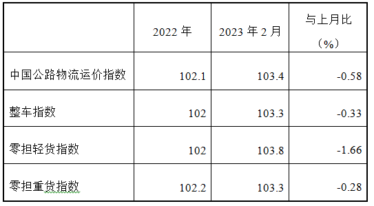 表1 2023年2月中國公路物流運價指數(shù)表
