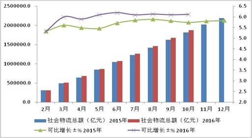1-10月,全國(guó)社會(huì)物流總額為187.2萬(wàn)億元,按可比價(jià)格計(jì)算,同比增長(zhǎng)6.1%,增速比上年同期提高0.4個(gè)百分點(diǎn),與前三季度基本持平,但比上半年回落0.1個(gè)百分點(diǎn)。進(jìn)入10月,物流需求延續(xù)了穩(wěn)中有進(jìn)的發(fā)展態(tài)勢(shì),社會(huì)物流總額增速保持較快水平,呈現(xiàn)穩(wěn)中趨升的發(fā)展態(tài)勢(shì)。