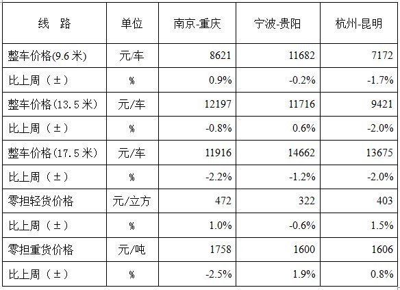 表1 本周部分線路平均價格及環(huán)比情況對比