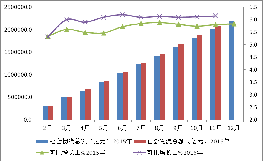 ----工業(yè)品物流需求小幅回升。1-11月,工業(yè)品物流總額194.5萬億,按可比價計算,比上年同期增長6.0%。其中,11月當(dāng)月增長6.2%,增速比10月份加快0.1個百分點。從環(huán)比看,工業(yè)品物流總額比上月增長0.51%。