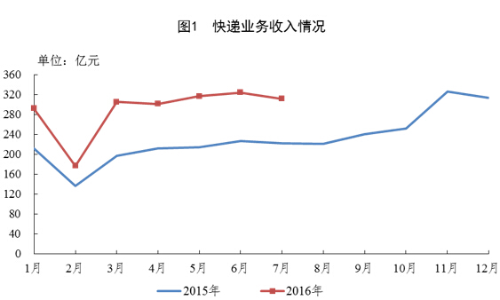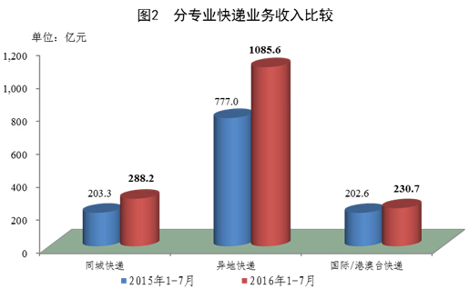 1-7月份,郵政行業(yè)業(yè)務(wù)收入(不包括郵政儲(chǔ)蓄銀行直接營業(yè)收入)累計(jì)完成2887.6億元,同比增長31.9%;業(yè)務(wù)總量累計(jì)完成3823.2億元,同比增長48.8%。