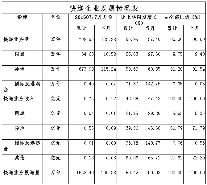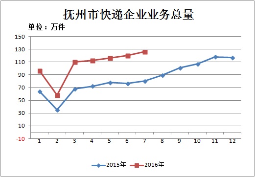 2016年1-7月,撫州市郵政企業(yè)和規(guī)模以上快遞服務(wù)企業(yè)業(yè)務(wù)收入(不包括郵政儲蓄銀行直接營業(yè)收入)累計2.84億元,同比增長24.68%;業(yè)務(wù)總量3.21億元,同比增長38.63%。