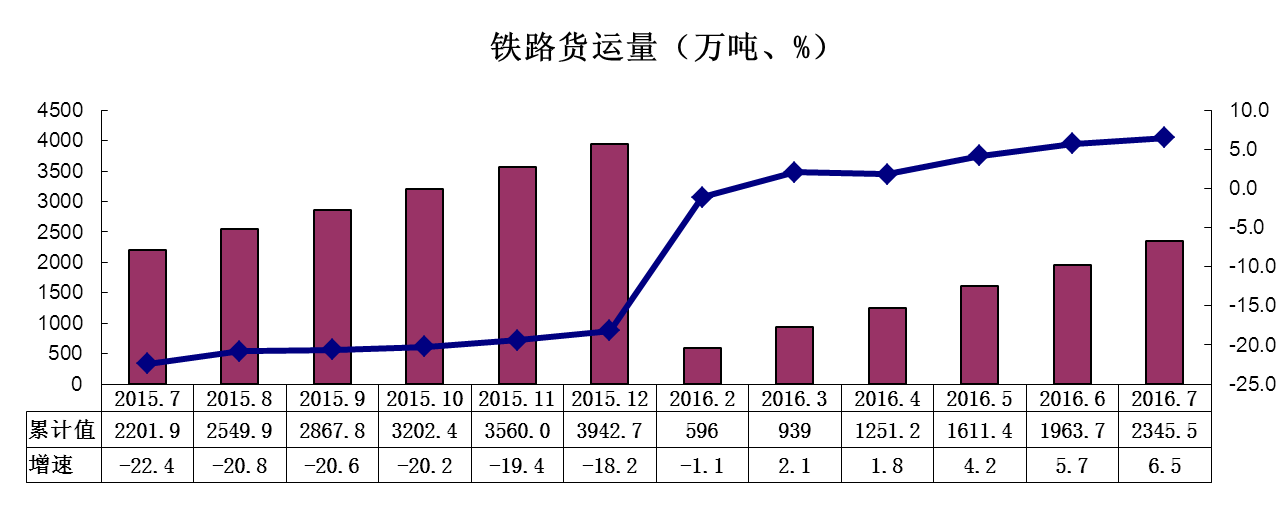 (三)鐵路貨運(yùn)增速繼續(xù)加快,公路貨運(yùn)增速繼續(xù)回升。1-7月,全省鐵路貨運(yùn)量完成2345.5萬(wàn)噸,增長(zhǎng)6.5%,增速連續(xù)3個(gè)月小幅加快,較上半年加快0.8個(gè)百分點(diǎn)。公路貨運(yùn)來(lái)看,其增速持續(xù)回落態(tài)勢(shì)繼續(xù)好轉(zhuǎn)。1-7月,全省公路貨運(yùn)量完成6.5億噸,增長(zhǎng)6.1%,增速較上半年回升0.4個(gè)百分點(diǎn),增速連續(xù)2個(gè)月小幅回升,預(yù)示工業(yè)經(jīng)濟(jì)運(yùn)轉(zhuǎn)效率有所加快,但總體看增速仍處低位,實(shí)體經(jīng)濟(jì)運(yùn)行態(tài)勢(shì)依然不容樂(lè)觀。