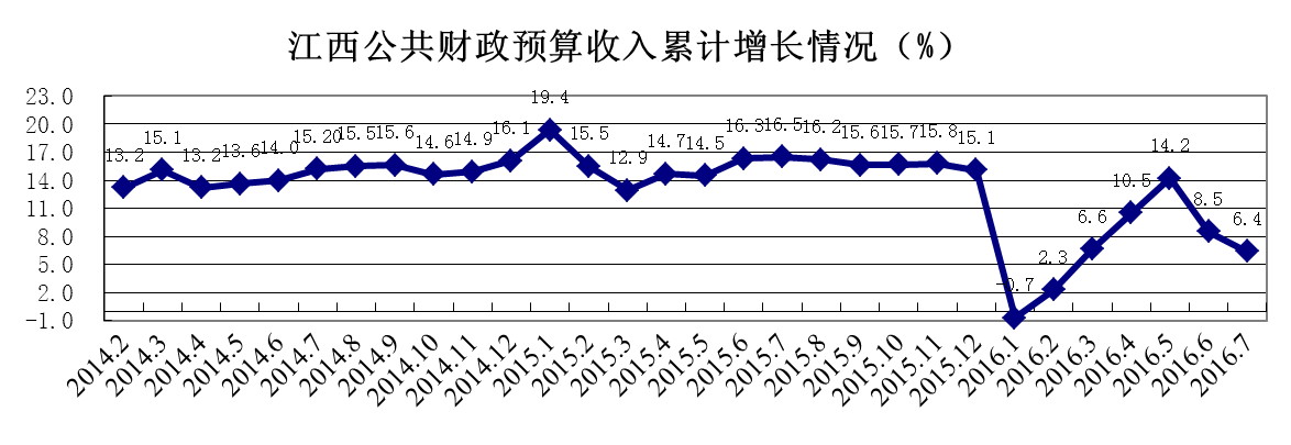 中部財(cái)政收入增速回落。1-7月,各省公共預(yù)算財(cái)政收入增速均較1-5月回落,幅度在0.5-4.5個(gè)百分點(diǎn)之間,山西繼續(xù)負(fù)增長(zhǎng),且降幅較上半年擴(kuò)大0.9個(gè)百分點(diǎn)。1-7月,我省實(shí)現(xiàn)公共預(yù)算財(cái)政收入1411.8億元,增長(zhǎng)6.4%,較上半年回落2.1個(gè)百分點(diǎn),增速繼續(xù)居中部第5位,總量繼續(xù)居第5位。各省按增速排名依次為:湖北12.5%、湖南8.5%、安徽8.2%、河南8.0%、江西6.4%、山西-8.3%。