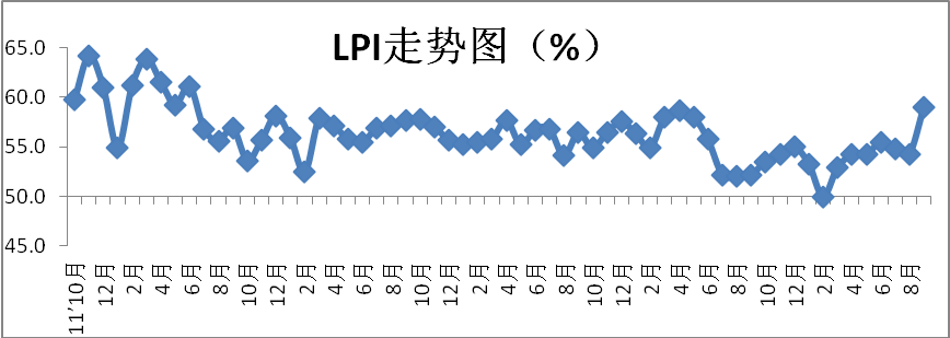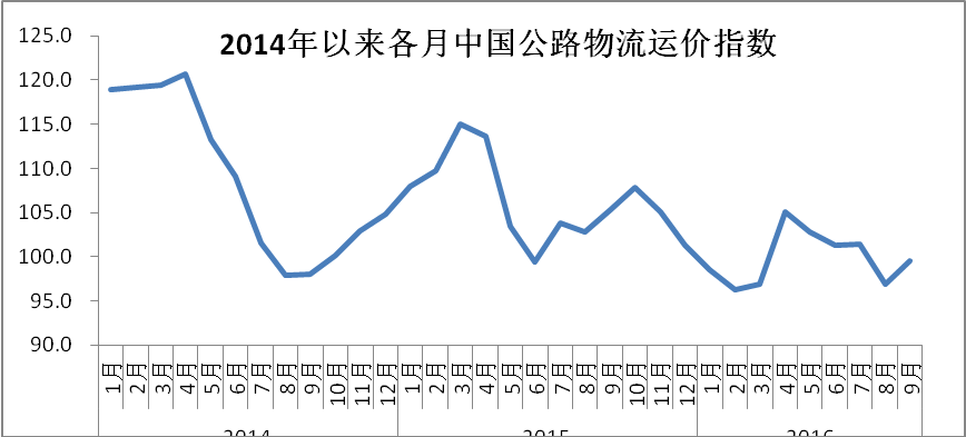 中國(guó)物流與采購(gòu)聯(lián)合會(huì)發(fā)布的2016年9月份中國(guó)物流業(yè)景氣指數(shù)為59%較上月回升4.7個(gè)百分點(diǎn);中國(guó)倉(cāng)儲(chǔ)指數(shù)為50.6%,較上月回落2.4個(gè)百分點(diǎn);中國(guó)公路物流運(yùn)價(jià)指數(shù)為99.5點(diǎn),比上月回升2.7%。