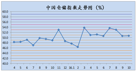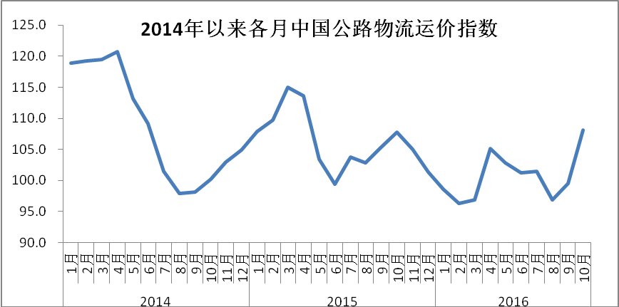 中國物流與采購聯(lián)合會發(fā)布的2016年10月份中國物流業(yè)景氣指數(shù)為59.2%較上月回升0.2個(gè)百分點(diǎn);中國倉儲指數(shù)為50.7%,較上月回升0.1個(gè)百分點(diǎn);中國公路物流運(yùn)價(jià)指數(shù)為108.1點(diǎn),比上月回升8.7%。