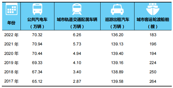 表5? 2017-2022年年末全國城市客運(yùn)裝備擁有量