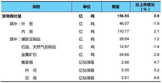 3.營業(yè)性貨物運(yùn)輸量為鐵路、公路、水路、民航完成數(shù),不包括管道數(shù)據(jù)。