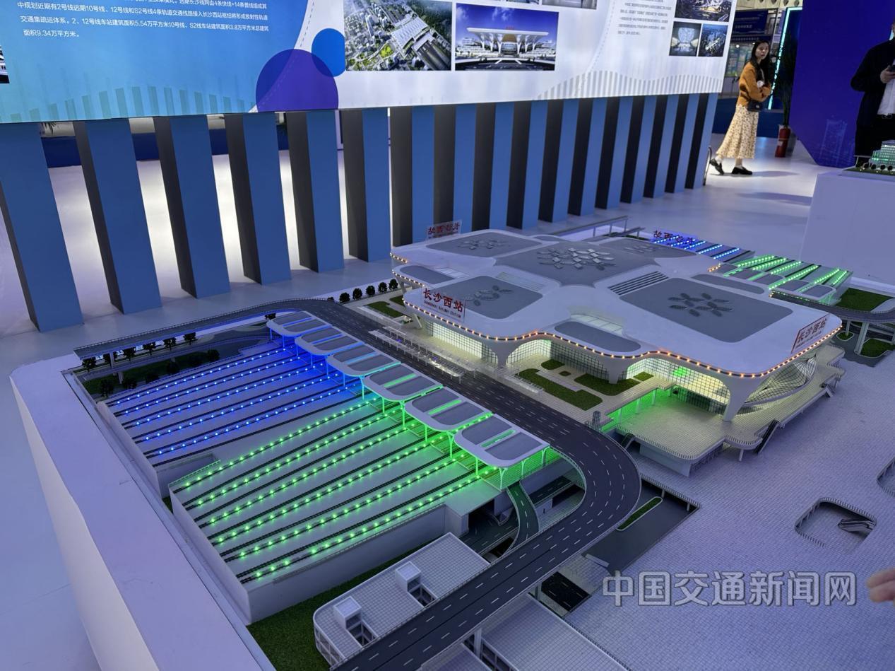 展區(qū)另一側(cè),長(zhǎng)沙西站綜合交通樞紐(簡(jiǎn)稱“長(zhǎng)沙西站”)的模型吸引了不少人駐足。長(zhǎng)沙西站位于湖南湘江新區(qū),總建筑面積約49萬(wàn)平方米,車站規(guī)模12臺(tái)22線,是國(guó)家“八縱八橫”鐵路網(wǎng)“渝長(zhǎng)廈”高速鐵路大通道的重要節(jié)點(diǎn),也是長(zhǎng)株潭地區(qū)交通樞紐“三主五輔”主要客站。