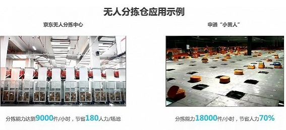分揀環(huán)節(jié)的機(jī)器人應(yīng)用能夠節(jié)約70%左右的人力。2017年8月,京東物流昆山無(wú)人分揀中心正式亮相,昆山無(wú)人分揀中心最大的特點(diǎn)是從供包到裝車(chē),全流程無(wú)人操作。目前,該中心已經(jīng)實(shí)現(xiàn)自動(dòng)供包并對(duì)包裹進(jìn)行六面掃描,保證面單信息被快速識(shí)別,由分揀系統(tǒng)獲取使用,進(jìn)而實(shí)現(xiàn)即時(shí)有效的分揀。申通的快遞分揀機(jī)器人“小黃人”可以24小時(shí)不間斷分揀,掃碼、稱(chēng)重、分揀功能“三合一”,能夠?qū)崿F(xiàn)快遞面單信息識(shí)別,以最優(yōu)路線投遞。