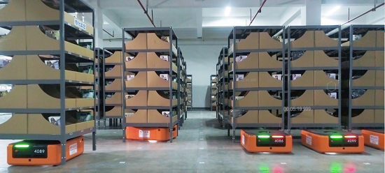 進(jìn)入傳化云倉(cāng)智能一號(hào)倉(cāng)內(nèi),一排排AGV移動(dòng)機(jī)器人,有條不紊的穿梭在上千個(gè)貨架中,自動(dòng)執(zhí)行上架、揀選、補(bǔ)貨、退貨、盤點(diǎn)等訂單任務(wù)。機(jī)器人可按照系統(tǒng)設(shè)定的路徑,自主將貨品所在貨架從倉(cāng)庫(kù)搬送到員工處理區(qū),將需補(bǔ)貨的貨架搬運(yùn)至補(bǔ)貨工作區(qū)。