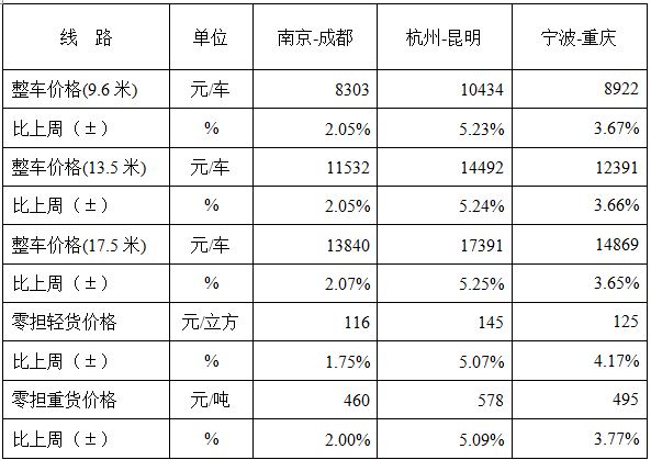 表1 本周部分線路平均價(jià)格及環(huán)比情況對(duì)比