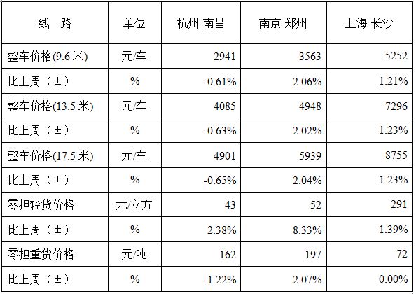 表1 本周部分線路平均價格及環(huán)比情況對比