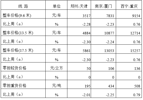 表1 本周部分線路平均價格及環(huán)比情況對比