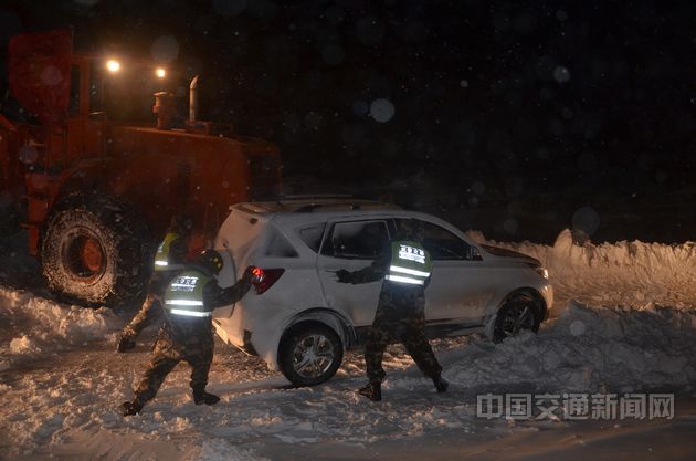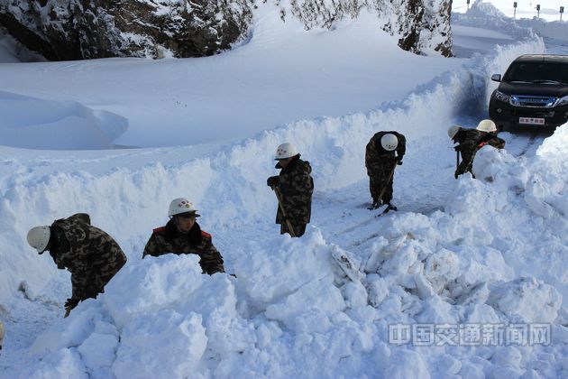 3月8日至9日,西藏阿里地區(qū)部分地區(qū)突降大雪,導(dǎo)致新藏公路噶爾縣門士溝段道路中斷,降雪過程中并伴有7至8級大風(fēng),氣候惡劣,路面積雪超20公分厚,50余臺車輛,120余人被困。武警交通四支隊第一時間趕赴受阻路段解救被困車輛,并向受困人員提供了醫(yī)療保障和發(fā)放了救援食品。經(jīng)過救援官兵連紅10個小時的奮戰(zhàn),門士溝段30余公里路面積雪全部清除,受阻車輛恢復(fù)通行。