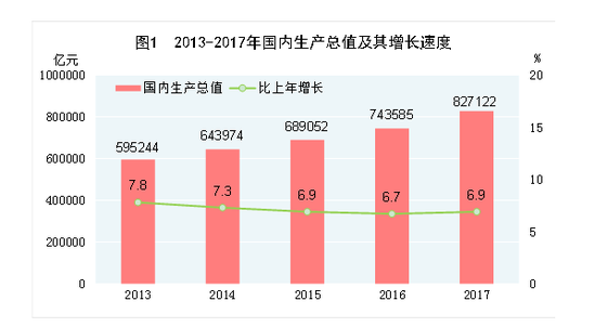 3月1日消息,國家統(tǒng)計(jì)局昨日發(fā)布《中華人民共和國2017年國民經(jīng)濟(jì)和社會(huì)發(fā)展統(tǒng)計(jì)公報(bào)》(以下簡稱《公報(bào)》)?!豆珗?bào)》顯示,初步核算,全年國內(nèi)生產(chǎn)總值827122億元,比上年增長6.9%。全年人均國內(nèi)生產(chǎn)總值59660元,比上年增長6.3%。全年國民總收入825016億元,比上年增長7.0%。