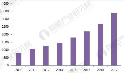 圖表2:2010-2017年我國(guó)智能物流行業(yè)市場(chǎng)規(guī)模(單位:億元)