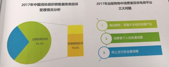 在遠(yuǎn)程購(gòu)物中,消費(fèi)者投訴的對(duì)象包括電商平臺(tái)、以微商為代表的個(gè)人網(wǎng)絡(luò)商家和電視購(gòu)物等。其中,電商平臺(tái)被投訴的三大問(wèn)題為:商品服務(wù)、質(zhì)量不合格和假冒商品問(wèn)題;消費(fèi)者個(gè)人信息遭泄露;網(wǎng)上支付安全難保障。