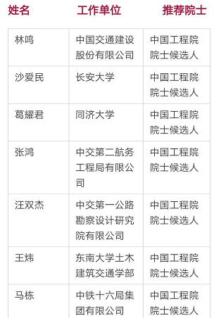 截至2月20日,全國(guó)已有多個(gè)學(xué)會(huì)和?。ㄊ小^(qū))科協(xié)陸續(xù)公示了2017年院士候選人。據(jù)不完全統(tǒng)計(jì),交通運(yùn)輸領(lǐng)域有以下候選人(排序不分先后):