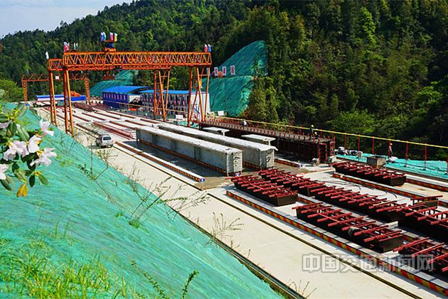 一是精心選擇場(chǎng)址。A6標(biāo)全長(zhǎng)7.483千米,管段內(nèi)山連山。山多橋多,標(biāo)段內(nèi)共有13座大橋,總長(zhǎng)4.289千米,占標(biāo)段總長(zhǎng)的57.3%,基本是橋接橋,最長(zhǎng)路基只有300多米。想在這樣的深山老林里尋塊地建梁場(chǎng),實(shí)屬不易。踏遍青山,項(xiàng)目部最終決定將一號(hào)制梁場(chǎng)建在兩座大橋之間的挖方路段上,盡管長(zhǎng)約270米、寬約25米,卻能滿足8座大橋的梁板預(yù)制,而且既不破壞紅線外自然環(huán)境,又能減少臨時(shí)征地,完全符合廣吉項(xiàng)目的“綠色公路建設(shè)”理念。
