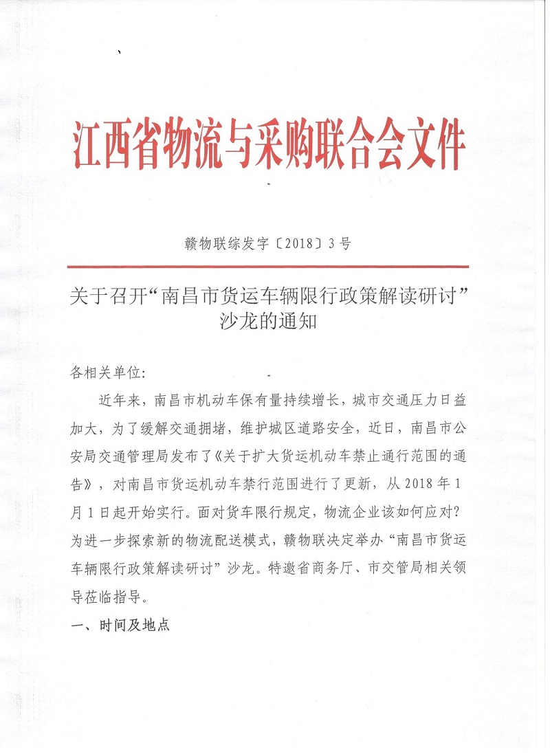 關(guān)于召開(kāi)“南昌市貨運(yùn)車輛限行政策解讀研討”沙龍的通知